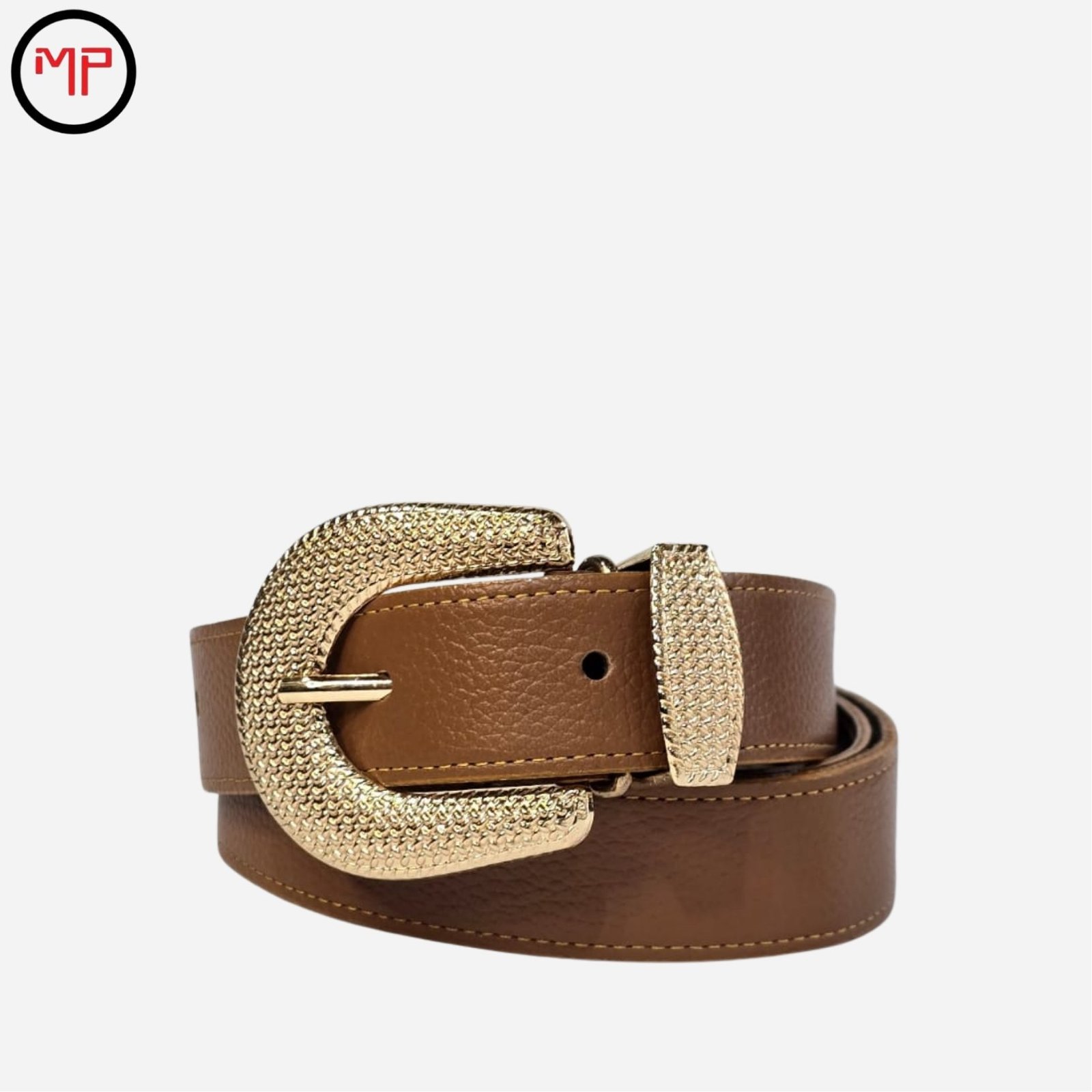 Cinturón Cuero Miel con Hebilla Dorada – Elegancia y Estilo Atemporal